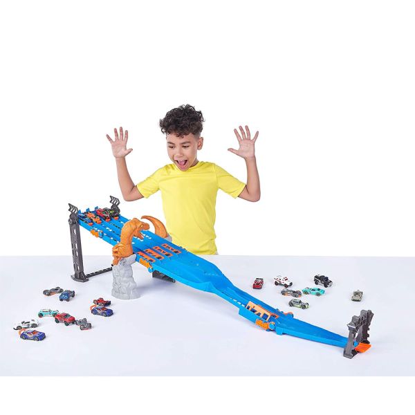 Incluye: Un vehículo, una bestia raptora y la pista de 4 carriles