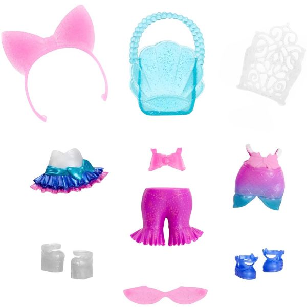 El Set de Ropas y Accesorios L.O.L. Surprise! Fashions Estilo Fiesta de Sirenas - 10 piezas es un conjunto para transformar las muñecas LOL Surprise en deslumbrantes sirenas. Diseñado para fomentar la creatividad de los niños, este set incluye 10 piezas con trajes y accesorios inspirados en el mar que deslumbran con sus detalles brillantes. Las pequeñas podrán personalizar sus muñecas con atuendos únicos, elevando el juego a nuevas alturas. Este set es perfecto para niñas que adoran las aventuras marinas y desean sumergirse en un mundo de estilo y fantasía. Al incluir accesorios temáticos, cada muñeca puede lucir un look de sirena perfecto para cualquier fiesta o juego. Este producto es ideal para regalos de cumpleaños o cualquier ocasión especial.
