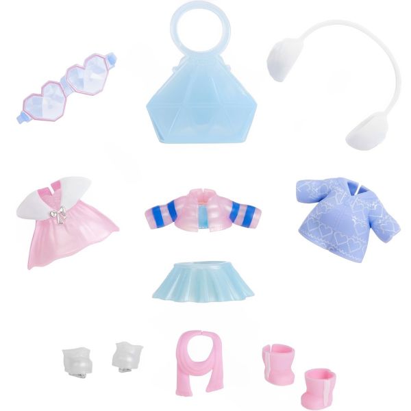 Contiene: 3 conjuntos, 2 zapatos y 4 accesorios