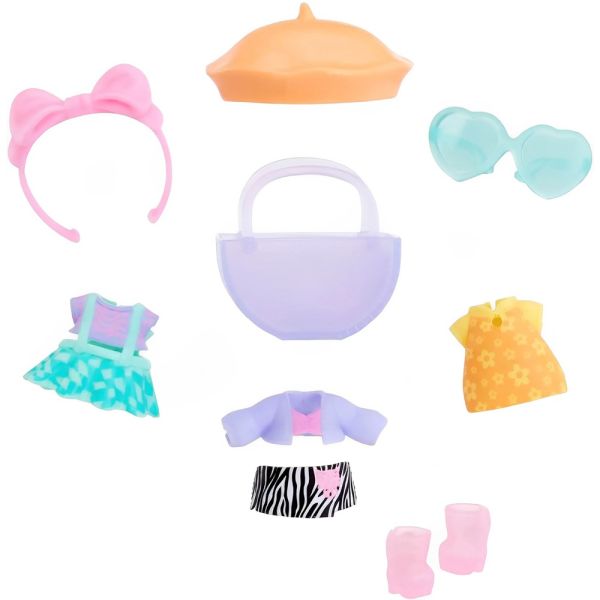 Contiene: 3 conjuntos, 2 zapatos y 4 accesorios