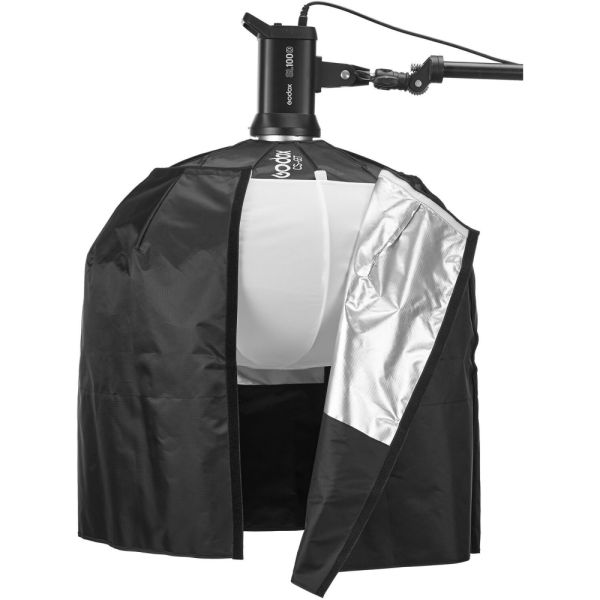 El Softbox Godox CS-65T, con diseño tipo linterna, proporciona una iluminación suave y envolvente gracias a su apertura de 270°, ideal para video y fotografía en espacios reducidos. Su estructura compacta de 65 cm de diámetro y 42,8 cm de profundidad lo hace fácil de transportar y montar. Incorpora una montura Bowens S ampliamente compatible y un diseño plegable que agiliza el montaje y desmontaje, mientras que su interior blanco asegura una difusión uniforme de la luz. Por otro lado, el Skirt incluido, permite controlar la salida de luz del softbox bloqueando zonas específicas. Esto evita derrames de luz y mejora la direccionalidad, lo cual es especialmente útil en sets pequeños o cuando se necesita un enfoque más preciso. Su fijación con velcro facilita la colocación, y su fabricación en tela negra garantiza resistencia y efectividad.