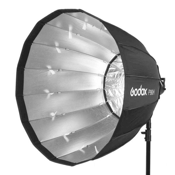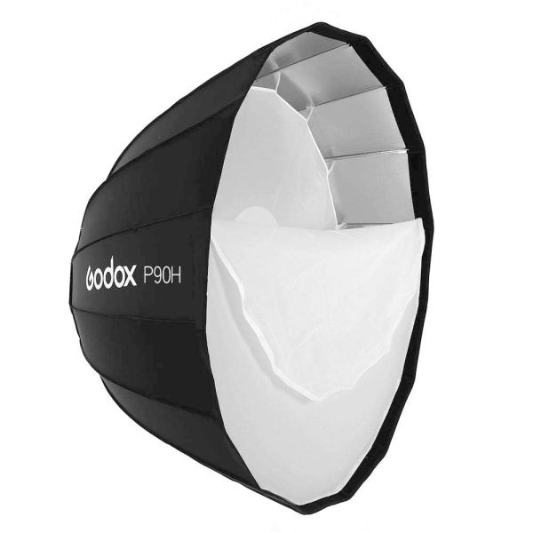 Godox P90H es una caja suave parabólica resistente a altas temperaturas que adopta un diseño parabólico profundo con un diámetro de 90 centímetros, que permite que la luz se envíe directamente y que el brillo disminuya progresivamente desde el centro hacia la periferia. Esto ofrece efectos de luz extremadamente suaves y de alta saturación para disparar con fácil instalación, operación simple, gran portabilidad y una amplia variedad de aplicaciones.