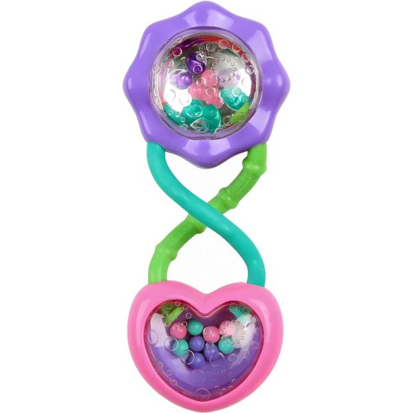 Este juguete para bebés con barra de Bright Starts presenta un diseño divertido y colorido, ideal para estimular los sentidos de la vista, oído y tacto de tu pequeño. Fabricado en plástico seguro, es perfecto para bebés de 3 meses en adelante. Este sonajero tiene un alegre diseño en rosa y morado, junto con un divertido mango retorcido que añade un toque encantador. Los mangos fáciles de agarrar y las cuentas sonajas proporcionan una experiencia táctil y auditiva estimulante para el bebé. Las superficies espejadas añaden un elemento visual fascinante. El mango texturizado facilita el agarre del bebé, contribuyendo al desarrollo de habilidades motoras. Este sonajero reflejado emite sonidos alegres y las cuentas de colores reflejan la luz, proporcionando una experiencia visual cautivadora. El sonajero promete diversión y sonrisas en cualquier momento y lugar.