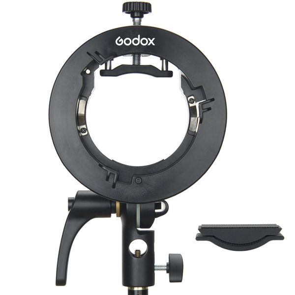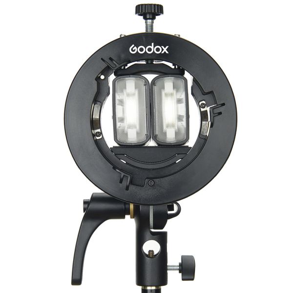 El soporte para flash Godox S2 tiene un diseño compacto y portátil hecho de plástico ABS resistente los impactos, control preciso de inclinación sin escalonamiento, mango de ajuste grande, soporte de sombrillas integrado. Permite maximizar el potencial de su flash en la cámara mientras le permite usar accesorios Bowens y se adapta a la mayoría de los flashes Speedlite. El soporte sostiene un flash ya sea vertical u horizontalmente, con una ligera presión que no raya en lugar de sujetadores de contacto o cinta. Cuenta con un grado inclinable de 180 grados y tiene un receptor de 5/8" para montaje en soporte.