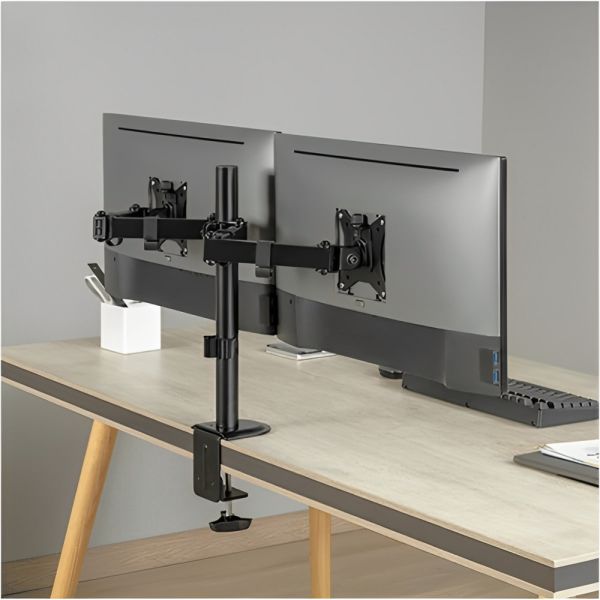 El Soporte para 2 Monitores FTX FTX66-C024E 17'' a 32'' Articulado ofrece una solución avanzada para maximizar tu productividad y espacio de trabajo. Este soporte es ideal para profesionales que necesitan gestionar múltiples aplicaciones simultáneamente o comparar datos en varias pantallas. Diseñado para acomodar monitores de 17" a 32", brinda una capacidad de carga de hasta 9 kg por pantalla, asegurando una estabilidad y seguridad inigualables. Su diseño articulado permite una inclinación de +45° a -45°, un giro de +90° a -90° y una rotación completa de +180° a -180°, ofreciendo una personalización total del ángulo de visión para una ergonomía óptima. Compatible con VESA 75x75 y 100x100, este soporte se adapta fácilmente a distintos modelos de monitores. Con unas dimensiones compactas de 869 x 112 x 561 mm, este soporte libera espacio en tu escritorio, manteniéndolo despejado y ordenado.