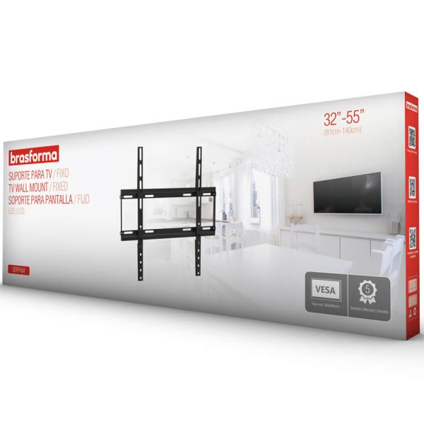 Con el Soporte para TV Brasforma SBRP404 obtienes más espacio en los ambientes de tu hogar. Una excelente opción para instalar tu televisor en la pared de forma segura.Contiene:1 soporte para TVKit de tornillos1 manual de instruccionesObservaciones:Compruebe que la superficie de instalación presenta una resistencia suficiente para una instalación seguraTenga en cuenta la carga máxima indicada para el soporteAconsejamos que la instalación sea realizada por un profesional del áreaCompruebe que el agujero del televisor es compatible con el soporte