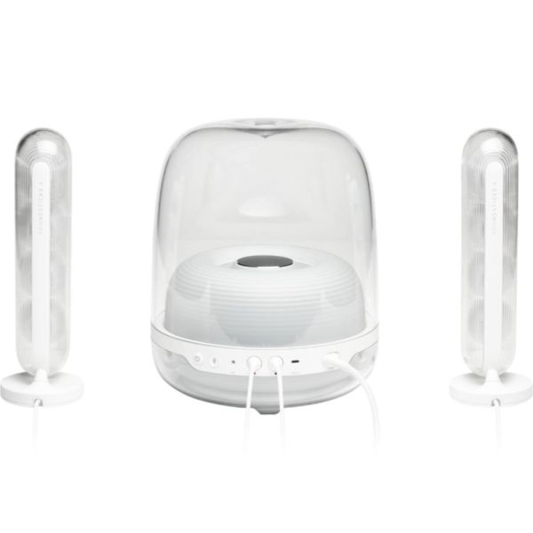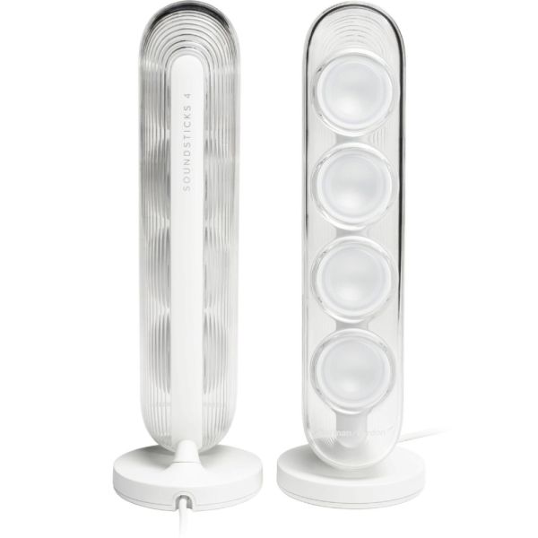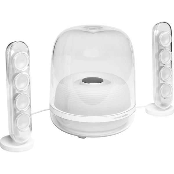 Llena tu habitación con un audio enriquecido con el speaker Harman Kardon SoundSticks 4 de 140 W. Con un icónico diseño de cúpula transparente, el sistema de altavoces Bluetooth se integra en casi cualquier habitación o entorno. Estos altavoces de rango completo producen hasta 140 W de potencia y cuenta con un subwoofer de 5.25" que se dispara hacia abajo para obtener un sonido de alta fidelidad para música, películas y más.