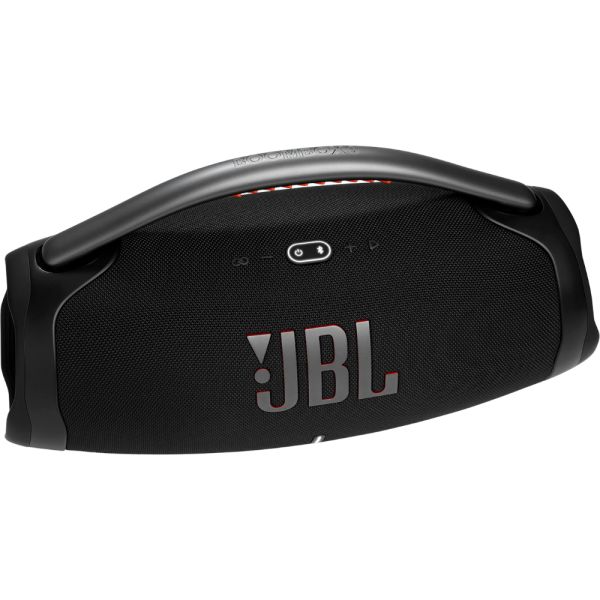Una versión moderna de un diseño clásico, el speaker portátil JBL Boombox 3 permite llevar fácilmente tu música a cualquier lugar. Llévelo al jardín, a la casa de un amigo o a la playa con su resistente asa de metal y sus agarraderas de silicona naranja. Gracias a sus tapas laterales gemelas y tela a prueba de agua y polvo, el Boombox 3 puede manejar el agua y la arena. Su transmisión de audio está hecha para que suene clara y dinámica con graves en auge, gracias al sonido profesional original de JBL y al sistema de altavoces de 3 vías de 136 W (180 W a través de CA). Las funciones adicionales, como el emparejamiento de dispositivos duales, la carga USB y más, seguramente harán que usted y el Boombox 3 sean el alma de la fiesta.
