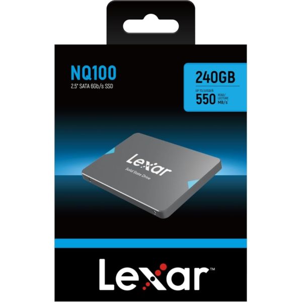 El SSD 2.5" Lexar NQ100 es una solución de almacenamiento digital esencial para aquellos que buscan mejorar el rendimiento de sus dispositivos. Este SSD se presenta como una opción ideal para laptops y desktops, brindando velocidades de lectura de hasta 550 MB/s. La tecnología avanzada de Lexar garantiza un rendimiento superior y una fiabilidad envidiable en comparación con los discos duros tradicionales. Este dispositivo no solo acelera el inicio de su computadora, sino que también optimiza la transferencia de datos y el funcionamiento de aplicaciones, lo que resulta en una experiencia de usuario más fluida y eficiente. El Lexar NQ100 es perfecto para almacenar y reproducir datos voluminosos, fotos, y videos en 4K de forma segura. Su diseño sólido y resistente a golpes y vibraciones elimina el riesgo de fallas mecánicas, ya que carece de partes móviles.