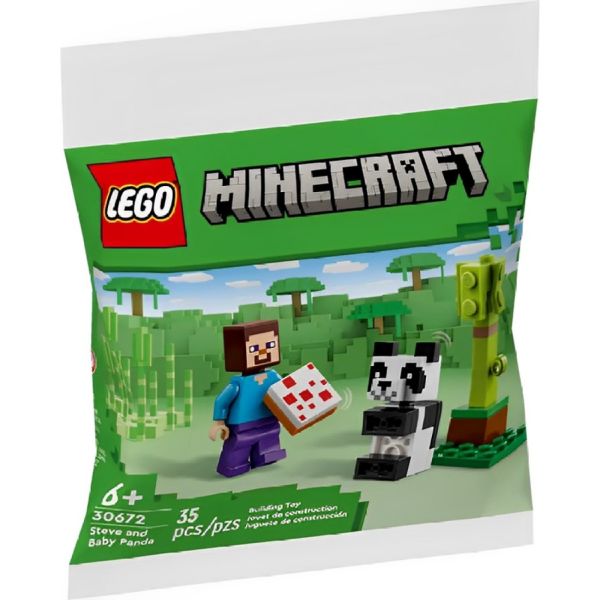 El Steve y Panda Bebé & Kiki y el Ataque de los Cocos LEGO Minecraft 30672 es ideal para niños mayores de 6 años que aman construir y explorar el universo de Minecraft. Con este juguete, los pequeños podrán sumergirse en aventuras creativas junto a Steve, un querido personaje del popular videojuego Minecraft, mientras alimenta a un adorable panda bebé. ¿Optará el curioso panda por mordisquear el bambú cercano en lugar de disfrutar del pastel? Este set pertenece a la prestigiosa franquicia Minecraft, asegurando autenticidad y conexión directa con el juego que fascina a millones de niños alrededor del mundo. Ideal para desarrollar habilidades de construcción, creatividad y resolución de problemas, este set es perfecto para jugar solo o en compañía.