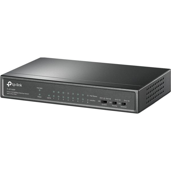 El switch Ethernet TP-Link TL-SF1009P es un dispositivo de red confiable y económico que ofrece un rendimiento óptimo para las pequeñas y medianas empresas que buscan mejorar su red local. Con sus nueve puertos Ethernet, incluyendo 8 puertos con soporte para PoE+ (Power over Ethernet), este switch proporciona una velocidad de transferencia de datos de hasta 100 Mbps en cada puerto, lo que permite una transmisión de datos rápida y fluida en la red. Este switch también ofrece funciones avanzadas de gestión de red, como VLAN, QoS y IGMP Snooping, lo que permite una segmentación efectiva de la red, priorización de tráfico y filtrado de paquetes multicast. El TP-Link TL-SF1009P es fácil de instalar y configurar, gracias a su interfaz de usuario web intuitiva y su diseño plug-and-play. Además, cuenta con una capacidad de conmutación de 1.8Gbps, lo que significa que puede procesar grandes cantidades de datos sin cuellos de botella ni retrasos.