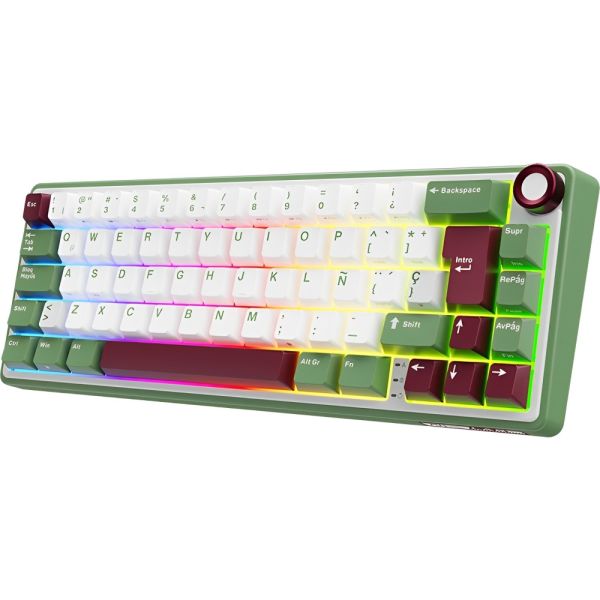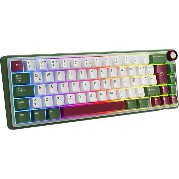 El Teclado Mecánico Royal Kludge R65 65% RGB es una joya de la tecnología moderna pensada para los amantes del espacio y la eficiencia. Con una disposición compacta del 65%, este teclado de 66 teclas te permite liberar valioso espacio en tu escritorio, sin sacrificar las funciones esenciales. Ideal para jugadores, programadores y creadores de contenido, el R65 ofrece una conectividad impecable a través de su modo cableado USB-C, asegurando una transmisión de datos rápida y fiable. Su estructura de junta innovadora proporciona una experiencia de escritura cómoda y acústicamente mejorada, mientras que la PCB intercambiable permite personalizar tu teclado con facilidad, adaptándolo exactamente a tus preferencias sin necesidad de soldaduras. La iluminación RGB con ritmo musical te ofrece 14 modos de retroiluminación, creando un ambiente inmersivo que sigue el ritmo de tu música favorita. Además, la tecnología anti-efecto fantasma garantiza una precisión total en cada tecla pulsada. Con su práctica perilla giratoria para ajustar el volumen y una funda antipolvo incluida, el Royal Kludge R65 está diseñado para ser tan funcional como atractivo.