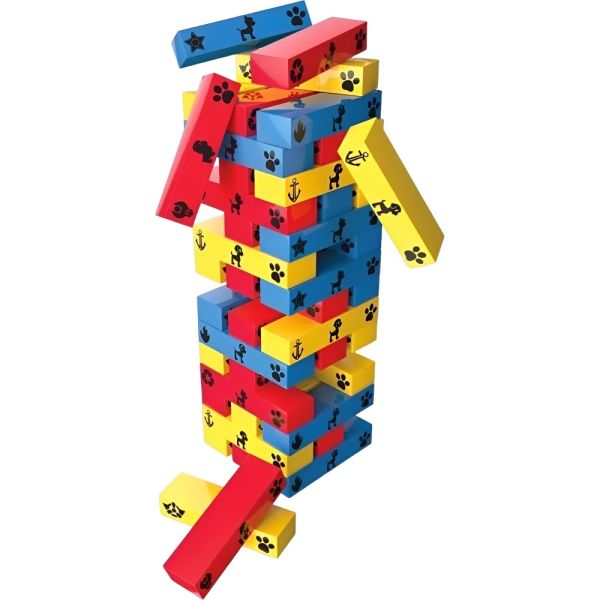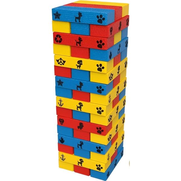 Juego: Consiste en retirar bloques de una torre sin que esta se derrumbe. Incluye 48 bloques de madera y un dado para agregar un elemento extra de juego