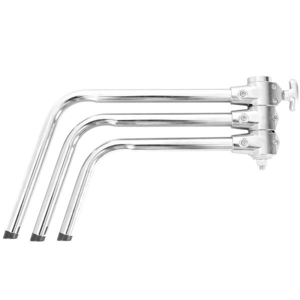El soporte de luz en C Godox con acabado plateado con brazo y cabeza de agarre de Godox combina un soporte en C duradero con un juego de brazo y cabeza de agarre de 85 cm para un uso versátil, dentro o fuera del estudio. La construcción de aluminio aguantará hasta incluso en los entornos más duros. El soporte tiene un centro de gravedad bajo para montar equipos pesados sin volcarse. Las patas están escalonadas para que los soportes en C se puedan colocar cerca uno del otro.Características:Base plegable tipo tortuga, para facilitar el transporte y almacenamiento.Se puede usar como un parante vertical o como un boom gracias a su brazo desmontable que viene incluido.Posee un bajo centro de gravedad por lo que ofrece gran estabilidad y soporta equipo pesado.De construcción en aluminio sólido con acabado plateado.Capacidad de carga: 10KgAltura máxima: 240cmLongitud de brazo: 128cm.