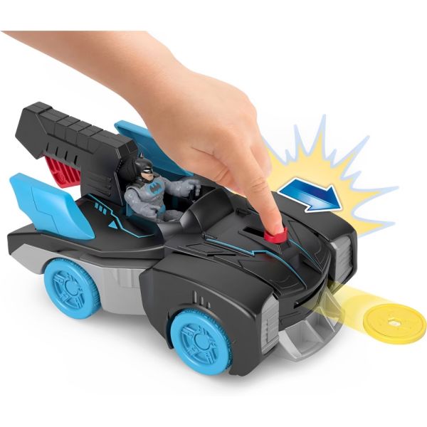 Incluye: 1 vehículo Batmóvil, 1 figura de Batman, 2 proyectiles de disco