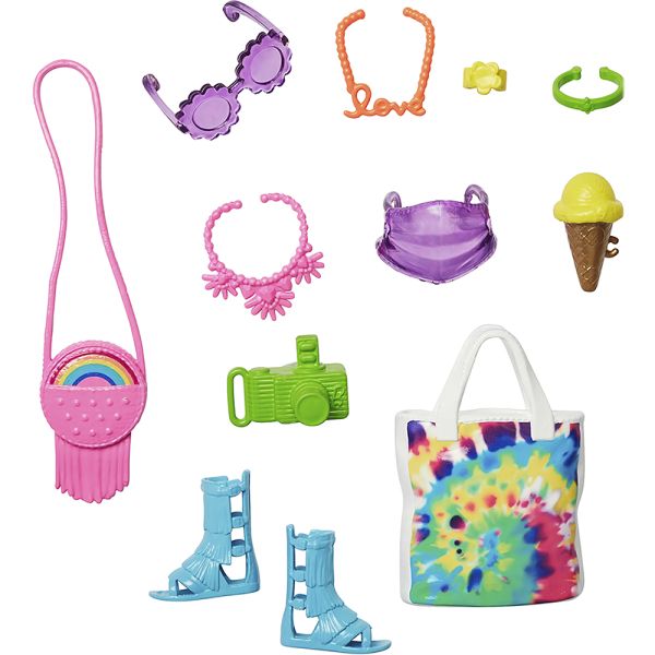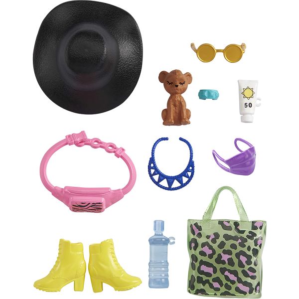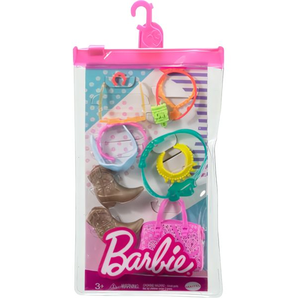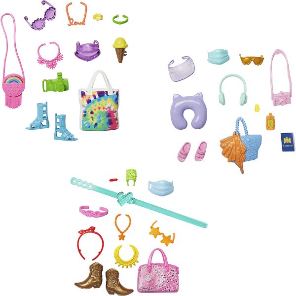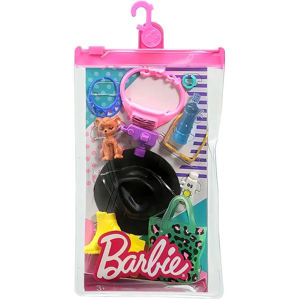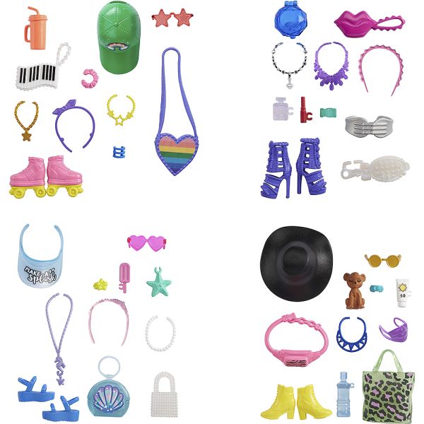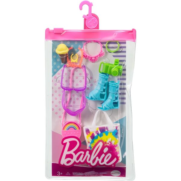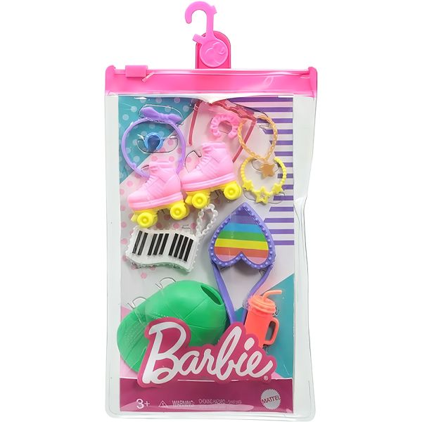 Barbie siempre está lista para emocionantes aventuras, y estos paquetes de accesorios son la clave para enriquecer su guardarropa y crear nuevas historias. Cada paquete incluye 11 accesorios temáticos que proporcionan una fuente infinita de inspiración. Con temas como patinaje sobre ruedas, océano, animales salvajes y noche de chicas, hay muchas opciones para coleccionar y explorar.Los accesorios incluyen elementos de moda como sombreros y bolsos, así como piezas temáticas imaginativas como patines y estrellas de mar. Combínalos con otras prendas y accesorios de la línea Barbie para dar rienda suelta a la creatividad y reinventar el estilo de Barbie en cada aventura.Estos paquetes también incluyen algunos accesorios con asas que la muñeca Barbie puede sostener en la mano, lo que les permite interactuar con los accesorios y contar historias prácticas. Con tanta variedad en los paquetes de accesorios y en las muñecas y modas Barbie, los niños pueden coleccionarlas para ampliar las posibilidades de juego y explorar diferentes roles y escenarios. Porque con Barbie, los niños pueden ser lo que quieran y vivir infinitas historias de aventura y diversión.Observación:Este producto viene desde el fabricante en forma de un surtido variado de modelos y/o colores (sin selección posible). Muñecas no incluidas. Los colores y las decoraciones pueden variar.