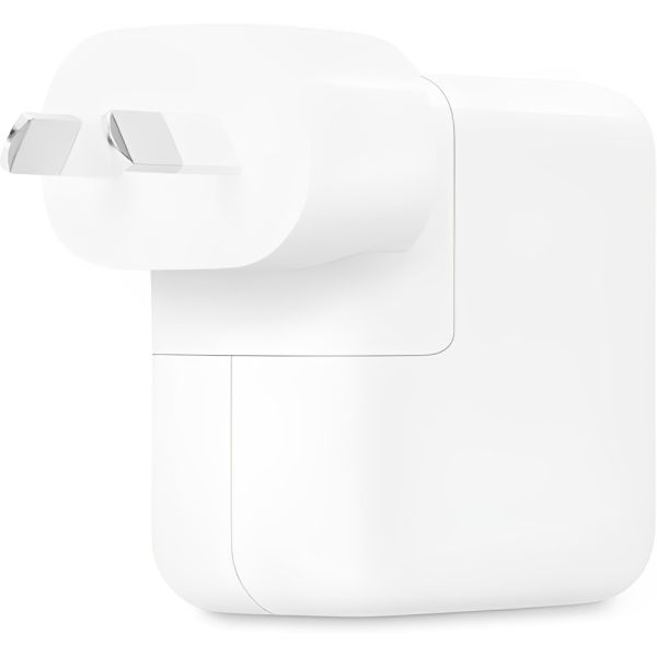 El Adaptador de Corriente Apple Dual de 35 W cuenta con dos puertos USB-C, permitiendo cargar simultáneamente dos dispositivos con eficiencia y rapidez. Es ideal para MacBook Air, pero también compatible con iPhone, iPad, Apple Watch y AirPods, brindando versatilidad para su uso en casa, oficina o viajes. Su diseño compacto y práctico lo convierte en una solución perfecta para mantener tus dispositivos siempre cargados.