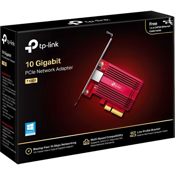 El Adaptador de Red PCIe TX401 ofrece velocidades de hasta 10 Gbps, diez veces más rápidas que los adaptadores Gigabit tradicionales, mejorando significativamente la transmisión de datos tanto para acceso a Internet como para redes locales. Su diseño versátil incluye compatibilidad con una variedad de velocidades de red y se adapta a diferentes sistemas operativos, ideal para tareas que requieren un uso intensivo de ancho de banda.