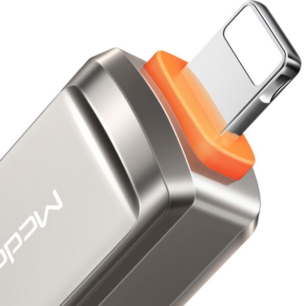 El adaptador Mcdodo Lightning a USB-C cuenta con un diseño compacto y resistente, ideal para el uso diario. Gracias a este pequeño adaptador, puede conectar fácilmente a su iPhone: unidad flash, mouse, teclado, cámara, lector de tarjetas SD, Gamepad y muchos más. Adaptador USB 3.0 OTG a Lightning (para iPhone). Permite la carga y la transmisión de datos. Compatible con smartphones, tablets, etc. Y equipos con conector Lightning. Está construido con aleación de aluminio de alta calidad. El adaptador funciona con iOS 13 y superior.