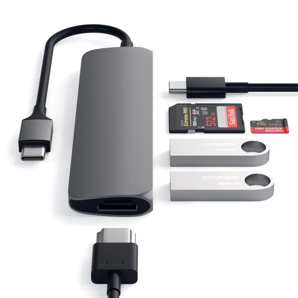ADAPTADOR MULTIPUERTO DELGADODE ALUMINIO TIPO C V2