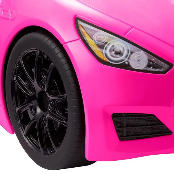 Auto Convertible de juguete de 2 plazas, con ruedas giratorias y diseño colorido. Es un gran regalo para niñas de 3 años en adelante, ya que pueden imaginar sus propias aventuras conduciendo el auto de Barbie. El vehículo cuenta con una forma deportiva con un exterior rosa, interior negro y detalles realistas; como cinturones de seguridad, un espejo retrovisor y una rejilla negra mate.