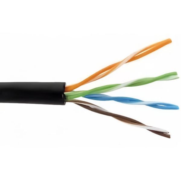 Cable UTP Cat. 5e resistente, con calibre de 24 AWG y un largor de 500 metros. Ideal para conexiones de red.