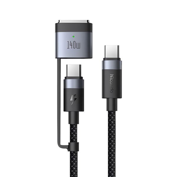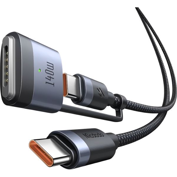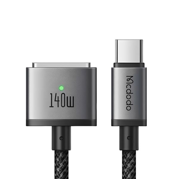 El Cable USB-C a USB-C/MagSafe 3 Mcdodo CA-0140 es la solución ideal para quienes buscan eficiencia y durabilidad en la carga de sus dispositivos. Fabricado con materiales de alta calidad como aluminio y nylon, este cable garantiza resistencia y una larga vida útil. Con una longitud de 2 metros, proporciona flexibilidad y comodidad, permitiendo cargar dispositivos a una distancia cómoda sin restricciones. Este cable destaca por su capacidad de carga rápida con potencias de hasta 240W y 140W, lo que asegura que tus dispositivos estén listos en menos tiempo. Además, cuenta con una luz indicadora LED que te permitirá saber en todo momento el estado de la carga, añadiendo una capa extra de conveniencia. La interfaz USB-C a USB-C y MagSafe 3 asegura una compatibilidad amplia y una conexión segura y estable. Ideal para uso en el entorno doméstico o en la oficina, este cable de Mcdodo, modelo CA-0140, se convierte en un accesorio imprescindible para quienes utilizan dispositivos de alta gama.