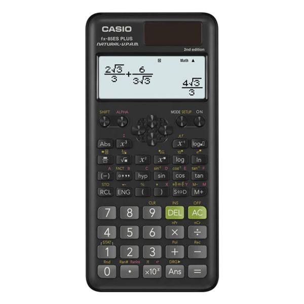 La calculadora científica Casio FX-85ES Plus 2nd Edición ofrece un diseño sencillo, sofisticado y ergonómico. Está equipado con la pantalla Natural V.P.A.M que muestra expresiones matemáticas como las raíces y las fracciones que aparecen en su libro de texto, y esto ayuda a aumentar la compresión ya que los resultados son más fáciles de entender. Esta calculadora es una herramienta excelente para la educación, con un diseño que enfatiza la comodidad en mano, la legibilidad y la facilidad de uso a través de la búsqueda por la simplicidad.