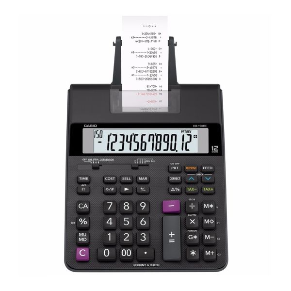 La calculadora con Bobina Casio HR-150RC es un modelo de uso rudo, es ideal para medianas y grandes empresas o despachos contables. Realiza impresión en dos colores (negro y rojo) a 2.0 líneas por segundo. Las impresiones de los resultados junto con cada paso del cálculo pueden ser documentos adjuntos. Además, cuenta con una pantalla de 12 dígitos y de gran tamaño que permite una fácil lectura.