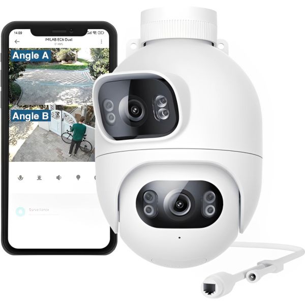 La cámara de vigilancia IP Imilab Mi Home Security EC6 2K PTZ Wifi - Blanco/Negro (CMSXJ68A) redefine la seguridad y la vigilancia del hogar al integrar tecnología avanzada y facilidad de uso. Esta innovadora cámara se destaca por su diseño de doble lente, permitiendo monitorear independientemente dos ángulos diferentes o trabajar en conjunto para seguir personas, vehículos y bicicletas en movimiento. Esto asegura una cobertura de vigilancia de 360°, ideal para áreas amplias y esquinas difíciles. Con una resolución de 2K, la cámara ofrece imágenes nítidas con visualización en vivo, tanto de día como de noche, garantizando que no se pierda detalle alguno. Una de sus principales características es el audio bidireccional, que facilita la comunicación instantánea con visitantes o el monitoreo de su familia. Además, la Imilab EC6 Dual incluye funciones de disuasión inteligentes como sirena, flash, y alertas de voz personalizadas para potenciar la seguridad. Todo esto sin tarifas de suscripción, brindándole un mayor control y tranquilidad. Conectada a través de Wi-Fi y equipada con una interfaz MicroSD, esta cámara es la elección perfecta para una seguridad hogareña eficiente, manejable directamente desde su dispositivo móvil.