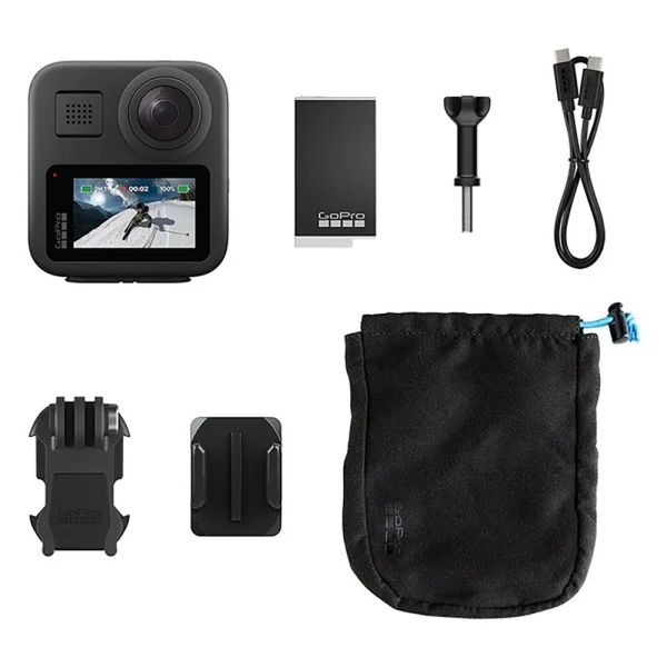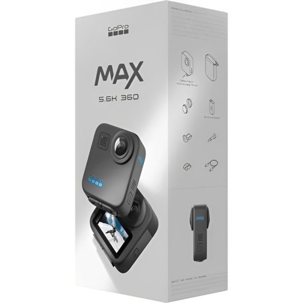 Captura tus aventuras como nunca antes con la GoPro MAX, la cámara más versátil de GoPro. Graba impactantes videos en 360° con resolución 5.6K, crea selfies como de dron gracias a la captura sin vara y logra tomas fluidas sin importar el movimiento con la estabilización Max HyperSmooth y el bloqueo del horizonte. Su audio envolvente de 6 micrófonos reduce el ruido del viento y captura un sonido envolvente de alta calidad.Ya sea como cámara 360 o como una GoPro tradicional, ofrece total flexibilidad con funciones como reencuadre flexible, fotos 360° de 16,6 MP, videos 1440p con una sola lente, y TimeWarp super estable. Además, es resistente y sumergible hasta 5 m, equipada con la potente batería Enduro para un rendimiento superior incluso en bajas temperaturas.Controla todo con tu voz, elige entre 4 lentes digitales (Estrecho, Lineal, Gran Angular y Max SuperView), y monta fácilmente con roscas estándar de 1/4-20 compatibles con trípodes y accesorios.GoPro MAX es más que una cámara: es tu herramienta para hacer épico cada momento.