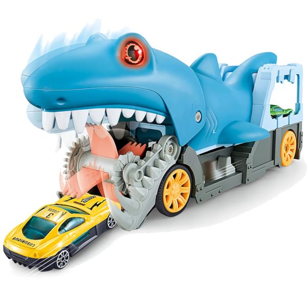El Camión Lanzador de Autos de Northsun ofrece una experiencia de juego emocionante y educativa para niños pequeños. Con un diseño frontal que simula la cabeza de un amenazante tiburón, captura fácilmente la atención de los más pequeños, estimulando su reconocimiento de colores, imaginación, habilidades lingüísticas y coordinación mano-ojo. Este juguete interactivo va más allá al incluir luces, sonidos y vibraciones realistas, brindando una experiencia multisensorial. Con dos formas de jugar, los niños pueden abrir el compartimiento trasero y crear una fila de vehículos mientras el tiburón los "traga" por delante. Alternativamente, pueden cerrar el compartimiento trasero, hacer que el tiburón trague los vehículos y luego presionar el botón de "expulsión" para verlos volar, agregando un elemento de acción dinámica y sorprendente. El Camión Lanzador de Autos Northsun Tiburón no solo entretiene sino que también promueve el aprendizaje y desarrollo de habilidades importantes de manera divertida e interactiva.