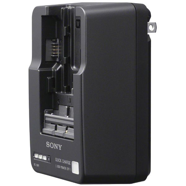 El cargador de batería InfoLitio BC-QM1 de Sony es compatible con las baterías de las series InfoLithium H, P, V, M y W para cámaras y videocámaras digitales seleccionadas. Tiene un enchufe retráctil y un factor de forma compacta para el almacenamiento y la portabilidad convenientes. El BC-QM1 se conecta directamente a una toma de pared, no necesitando ningún cable de alimentación, y funciona con alimentación de 100-240VCA para permitir el uso en todo el mundo. Se carga su batería en aproximadamente 90 minutos en el modo rápido y 150 minutos en el modo estándar. Además, se configura con un puerto USB para cargar un dispositivo adicional, como un teléfono inteligente. Un cable USB se debe adquirir por separado.