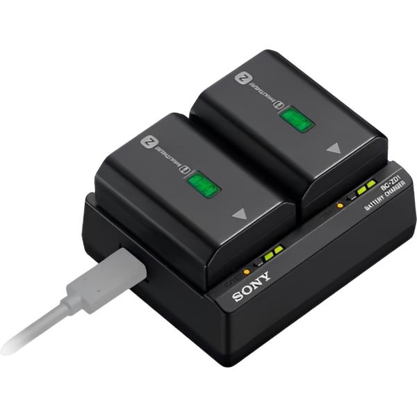 Descubre la eficiencia y comodidad con el Cargador de Batería Sony BC-ZD1, diseñado específicamente para las baterías Sony NP-FZ100. Este cargador tipo USB PD permite cargar simultáneamente dos baterías de alta capacidad en tan solo 155 minutos, asegurando que nunca te quedes sin energía durante tus sesiones fotográficas. Equipado con indicadores LED, el BC-ZD1 ofrece una visión clara del estado de carga de cada batería, mostrándolo en cinco pasos distintos. Su diseño compacto y portátil, con dimensiones de 84,5 x 29,2 x 70,0 mm, lo hace ideal para profesionales del mundo audiovisual que necesitan optimizar su espacio de trabajo sin sacrificar funcionalidad. La seguridad es una prioridad con el Cargador Sony BC-ZD1. Está diseñado para ofrecer un funcionamiento seguro, incorporando tecnología que disipa el calor y monitorea la temperatura, protegiendo así tus equipos más valiosos. Además, con su embalaje respetuoso con el medioambiente, sin plásticos, este cargador reitera el compromiso de Sony con la sostenibilidad. Ideal para fotógrafo en movimiento o para quienes trabajan en el set de grabación, el cargador Sony BC-ZD1 es una excelente elección para mantener tus baterías listas y cargadas.