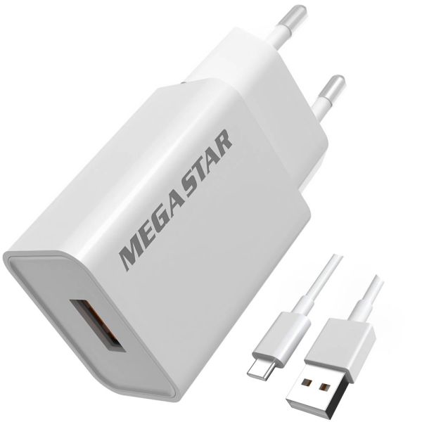El cargador de pared Mega Star CH400 USB-A 10 W es una opción ideal para cargar tus dispositivos de forma rápida y segura. Cuenta con potencia de 10 W que podrás cargar tu Smartphone, tablet u otros dispositivos de manera eficiente. Además, incluye un cable USB-C para mayor comodidad. Este cargador incorpora la tecnología avanzada, lo que lo hace más eficiente y compacto en comparación con los cargadores convencionales.