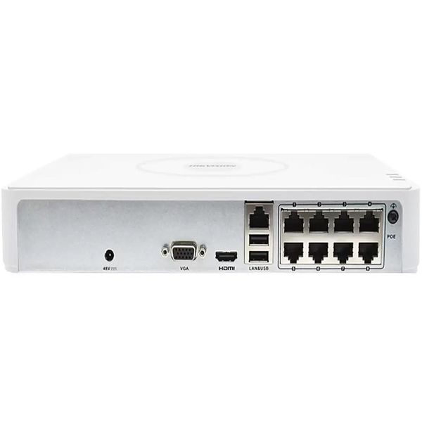 El NVR Hikvision DS-7108NI-Q1/8P es un dispositivo que graba y administra imágenes digitales las cuales son enviadas desde las cámaras IP a través de una red. Tiene 8 canales con grabación a una resolución de hasta 4MP, con formatos de vídeo H.265+/H.265/H.264/H.264+. Cuenta con salidas de vídeo HDMI y VGA. La compresión H.265+ reduce efectivamente el espacio de almacenamiento y los costos hasta en un 75%, con transmisión de alta definición. Tiene capacidad para conectar hasta 8 cámaras IP de canal y admite visualización en vivo, almacenamiento y reproducción de hasta 4MP de alta definición. Además, cuenta con capacidad para un disco duro SATA de hasta 6 TB de capacidad (vendido separadamente).