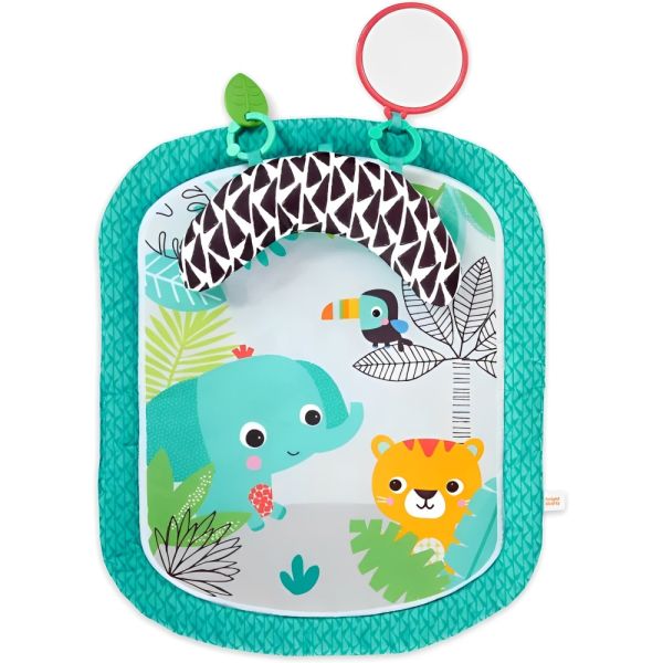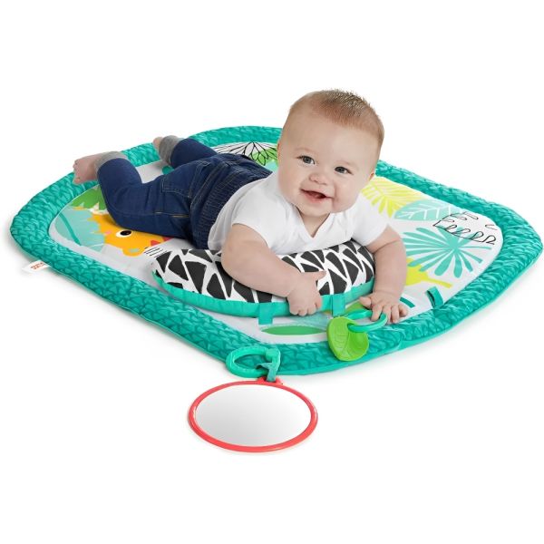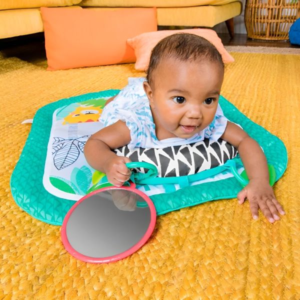 La colchoneta Bright Starts Totally Tropical es la elección perfecta para estimular el desarrollo de tu bebé mientras se divierte. Este tapete de estimulación boca abajo transforma la hora de juego en una emocionante aventura en la jungla. Diseñada especialmente para recién nacidos y niños mayores, la colchoneta incluye dos juguetes interactivos: un espejo seguro para bebés y un juguete con forma de hoja que invita a explorar diferentes texturas. Además, viene equipada con una almohada prop para proporcionar comodidad adicional durante el tiempo que tu pequeño pasa en el piso. El diseño compacto y portátil de la colchoneta permite transportarla fácilmente en el bolso de pañales, convirtiéndola en la compañera ideal para juegos tanto en casa como fuera de ella. Su fácil mantenimiento es otra gran ventaja, ya que es completamente lavable a máquina, asegurando que siempre esté limpia y lista para usar.