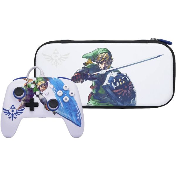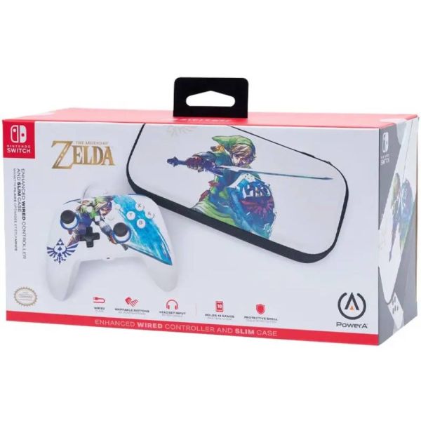 Este bundle para la consola Nintendo Switch, tiene un control alámbrico Nintendo Switch que ofrece versatilidad de doble vibración, diseño ergonómico con disposición de botones estándar, conector de auriculares estéreo estándar de 3.5mm para audio en el juego y un estilo personalizado de Zelda Sword para disfrutar aún más mientras te diviertes con tu Nintendo Switch. El estuche PowerA Zelda Sword está hecho de un tejido resistente y tiene un diseño elegante que te permitirá llevar tu Switch y todos sus accesorios con estilo.