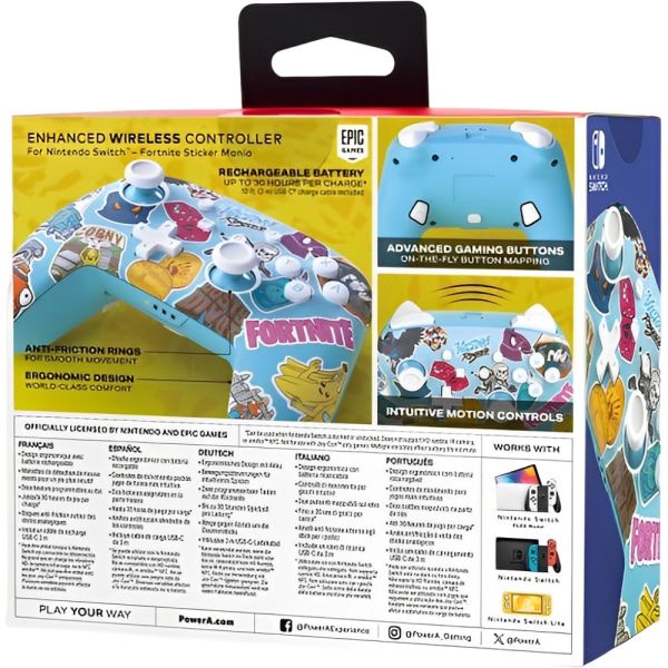El Control PowerA Wireless PWA-A-09171 para Nintendo Switch presenta un diseño ergonómico atractivo con temática de Fortnite Sticker, perfecto para los entusiastas del popular videojuego. Equipado con un D-pad de tamaño completo, botones ABXY y botones de hombro (L/R/ZL/ZR), ofrece una experiencia de juego precisa y cómoda. Su conectividad inalámbrica, a través de Bluetooth 5.0, asegura una conexión rápida y estable con las consolas compatibles, incluyendo Nintendo Switch, Nintendo Switch (modelo OLED) y Nintendo Switch Lite. Además, el control funciona con dos baterías AA, proporcionando hasta 30 horas de juego continuo, permitiendo a los jugadores disfrutar de largas sesiones sin interrupciones.