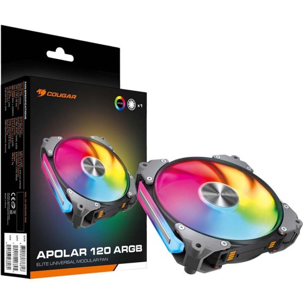 El Cooler Cougar modular universal Elite Apolar 120 ARGB combina un rendimiento excepcional con un diseño estilizado y moderno. Su diseño completamente circunscrito maximiza el área de superficie de las aspas, proporcionando un flujo de aire eficiente y una espectacular iluminación ARGB. Con características avanzadas como la conectividad de liberación rápida, la tecnología de amortiguación Q-Stop para reducir el ruido, y los cojinetes hidrodinámicos HDB que prolongan su vida útil, este ventilador es ideal para quienes buscan una refrigeración de alta calidad sin comprometer el estilo.