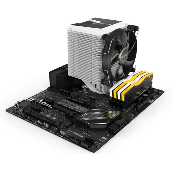Shadow Rock 3 White ofrece una refrigeración impresionante de 190 W TDP y está diseñado para quienes buscan una refrigeración por aire de alto rendimiento y un bajo nivel de ruido. El disipador de calor blanco con su extraordinaria elegancia se destaca especialmente en sistemas que emplean temas de colores claros.Un paso elevado de las aletas y una resistencia de aire reducida garantizan el mejor rendimiento posible en combinación con el ventilador elegido. El ventilador desacoplado Shadow Wings 2 de 120 mm PWM de alta velocidad funciona a solo 24,4 dB(A) incluso a la velocidad máxima de 1600 rpm.El Shadow Rock 3 White se puede instalar en todas las placas base habituales y su construcción asimétrica ahorra mucho espacio. Las ranuras de memoria situadas delante del disipador no se bloquearán .Características principales: