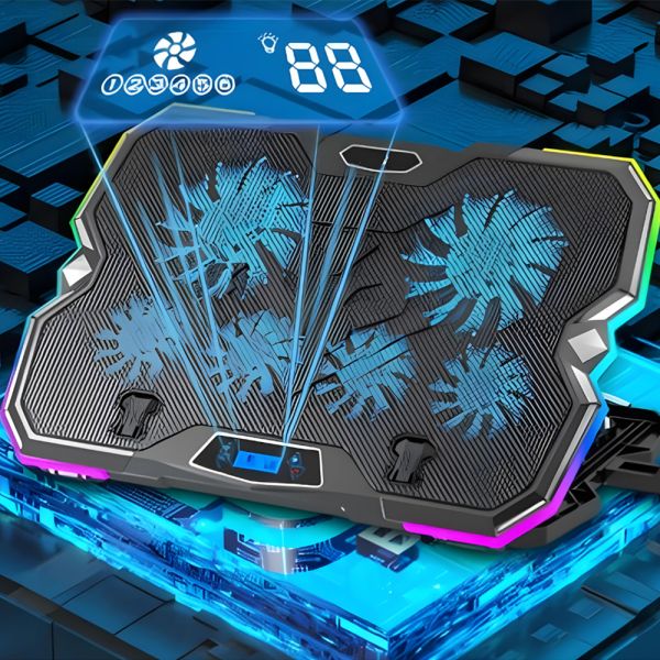 El Cooler para Notebook Satellite A-CP45 es un dispositivo de refrigeración diseñado para mejorar el rendimiento de tu computadora portátil. Cuenta con 2 ventiladores grandes de dimensiones 100 * 100 * 15mm y 4 ventiladores pequeños del mismo tamaño, proporcionando un flujo de aire de 65 CFM. Con un nivel de ruido que oscila entre 25 y 30 dBA, funciona de manera silenciosa. Está fabricado con plástico ABS y malla de hierro para garantizar durabilidad y eficiencia. Dispone de 2 puertos USB 2.0 para conectar otros dispositivos y ofrece 5 ángulos ajustables para mayor comodidad. Además, incorpora una pantalla LCD para controlar la iluminación RGB, ofreciendo 10 modos de color y un práctico soporte para teléfono.