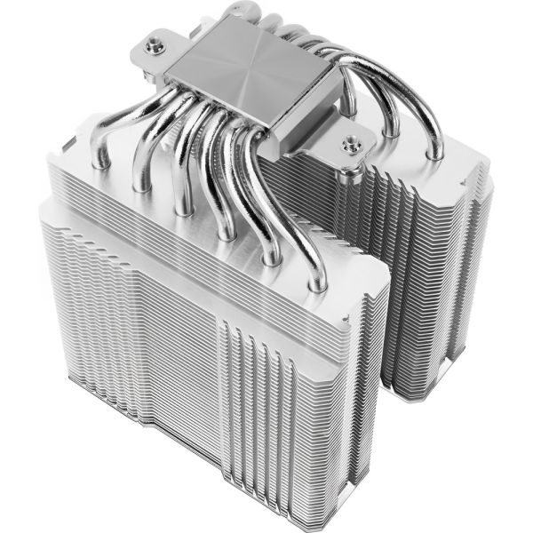 ElCoolerideal para mantener tu CPU a temperaturas óptimas, compatible con los sockets Intel LGA115X/1200/1700/1851 y AMD AM4/AM5. Con un diseño robusto, seis tubos de calor de cobre niquelado y un ventilador de alto rendimiento, garantiza una refrigeración eficiente y silenciosa para tus tareas más exigentes.