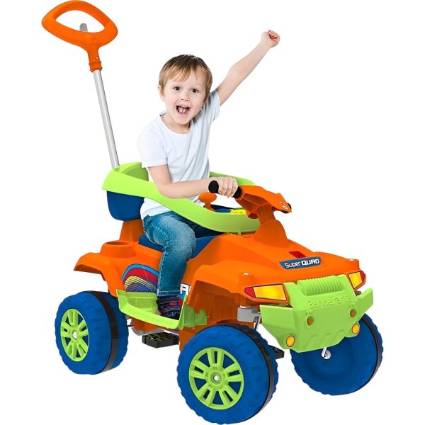 El Cuatriciclo Infantil Bandeirante Super Quad Paseo & Pedal es versátil y divertido que combina comodidad y funcionalidad para adultos y niños, ideal para pasear o pedalear.