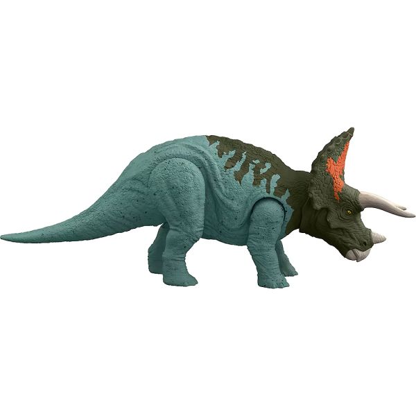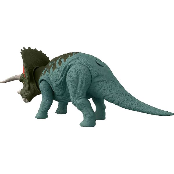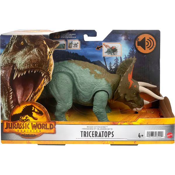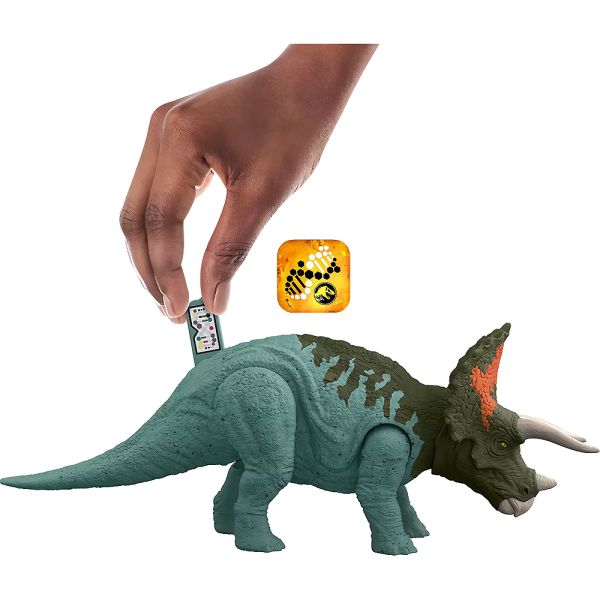 Prepárate para emocionantes aventuras con este Triceratops inspirado en Jurassic World Dominion. Esta figura de dinosaurio ruge y ataca, de tamaño mediano y aproximadamente 33 cm de largo, es el favorito de los fans. Con sonidos de rugidos y una acción de ataque de cabeza fácil de activar, el juego de batalla se vuelve realista y emocionante. Además, la realidad aumentada (RA) lleva la experiencia al siguiente nivel, escanea el código de ADN oculto con cualquier dispositivo inteligente para desbloquear opciones de RA en la aplicación gratuita Jurassic World Facts. La RA permite estudiar el dinosaurio en el laboratorio y también introducirlo en nuestro mundo, una experiencia única y emocionante. Colecciona todos los dinosaurios ruge y ataca para vivir toda la acción. Un regalo perfecto para los entusiastas de los dinosaurios y los fans de Dominion, a partir de 4 años en adelante.