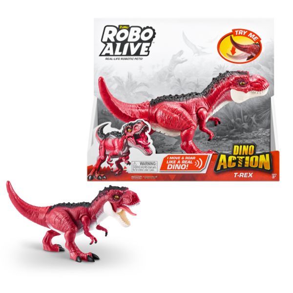 Mira cómo este Robo Alive Dino Action T-Rex se mueve y ruge como un dinosaurio real. Activa la cola para ver cómo los dinámicos brazos del dinosaurio se agarran a la presa y la mandíbula se abre de par en par para liberar un rugido. Pero no te acerques demasiado o te arriesgues a convertirte en la próxima cena de este Dinousario.