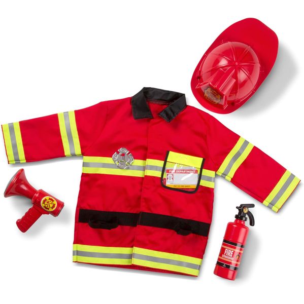 Todo lo que un niño necesita para convertirse en jefe de los bomberos, además de emocionantes accesorios para estimular el juego imaginativo. Incluye saco, casco, insignia, extintor de incendios, megáfono y etiqueta con nombre reutilizable. El megafono cuenta con efectos de sonido realista. Los materiales de alta calidad garantizan durabilidad y seguridad; saco lavable a máquina; accesorios faciles de limpiar con un paño. Recomendado para niños de 3-6 años.