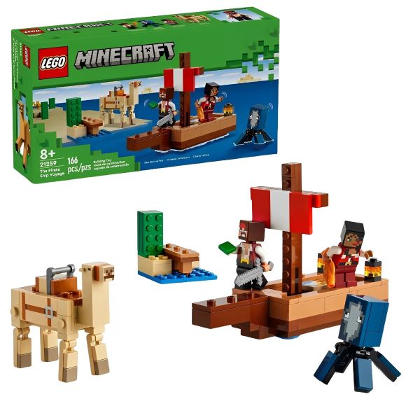 Este magnífico set de construcción "El Viaje en el Barco Pirata Lego Minecraft 21259" está diseñado para los aficionados de Minecraft mayores de 8 años, ofreciendo un mundo de posibilidades creativas con sus 166 piezas. Con la franquicia Lego y Minecraft unidas, este juego no solo garantiza diversión, sino también el desarrollo de habilidades cognitivas, creatividad, y motricidad fina. El set incluye un impresionante barco pirata, un calamar, un camello, y dos valientes minifiguras piratas: un espadachín y un bucanero. Además, cuenta con emocionantes accesorios como un pez, un mapa, una espada de hierro y un cactus que pueden ser sostenidos por las figuras. Este barco de juguete, que mide más de 10 cm de alto, 14 cm de largo y 5 cm de ancho, es perfecto para recrear batallas épicas y aventuras marinas. Fabricado en plástico de alta calidad, este set es ideal para estimular la imaginación de los niños, proporcionándoles horas de entretenimiento y aprendizaje. Es el regalo perfecto para cualquier joven constructor y fan de Minecraft que busca vivir una experiencia de juego única y envolvente.