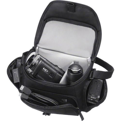 El estuche de transporte suave LCS-U21 negro de Sony es un estuche de tamaño medio para acomodar su cámara de vídeo con HD, cámara Alpha DSLR, NEX o Cyber-shot. El case posee un divisor interno móvil que le ayudará a configurar su equipo de acuerdo a su necesidad. Tres bolsillos externos, dos en el lateral y uno en la parte delantera. El bolsillo frontal tiene un soporte para memoria integrado.