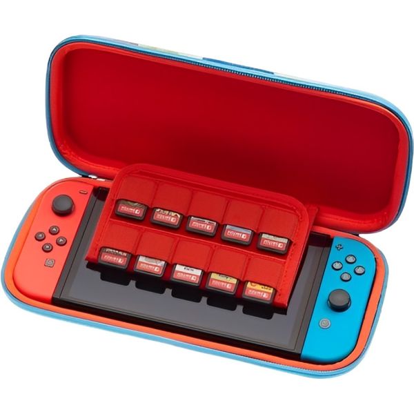 El estuche protector PowerA Mushroom Kingdom para Nintendo Switch (PWA-A-09471) es una opción ideal para los aficionados a los videojuegos que desean mantener su consola segura mientras están en movimiento. Con un diseño compacto y resistente, el estuche presenta atractivos gráficos del icónico Reino Champiñón, lo que lo convierte en un accesorio divertido y funcional.